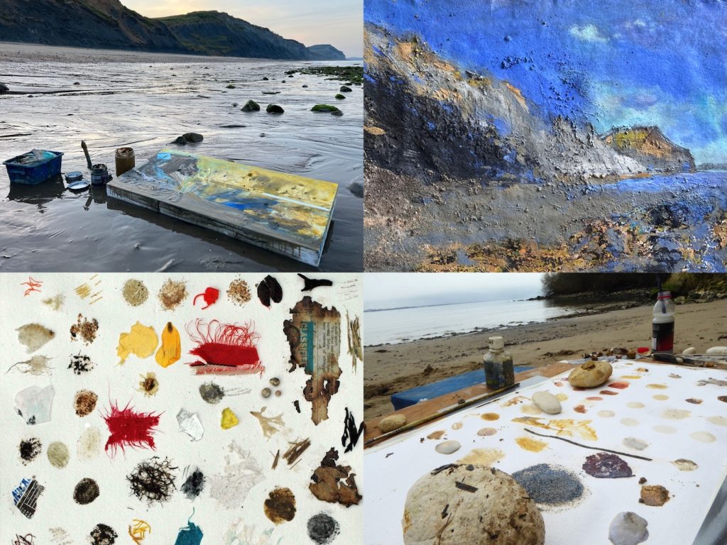 Sensing Place focuses on Frances Hatch’s process as a plein air painter and the ‘place palettes’ she makes at Dorset coastal locations using found earths, clays, organic matter and man-made materials like litter. Accompanied by written and painted notes, the palettes become portraits of place that inform her paintings, a small number of which will be on show in the exhibition.