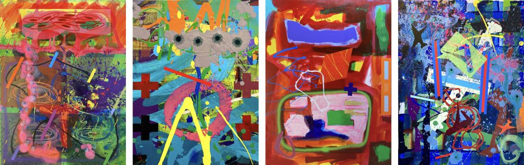 An exhibition of Jeremy Diggle’s exuberant, highly coloured abstract paintings.