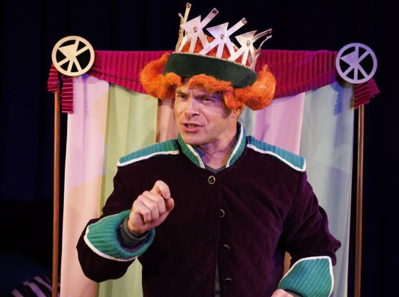 The King of Nothing is aimed at ages 5-11. It is a comic and playful show, and the younger children will enjoy the slapstick humour, while older children and adults can also appreciate the verbal and theatrical wit. Under-5s may not stay engaged as well.