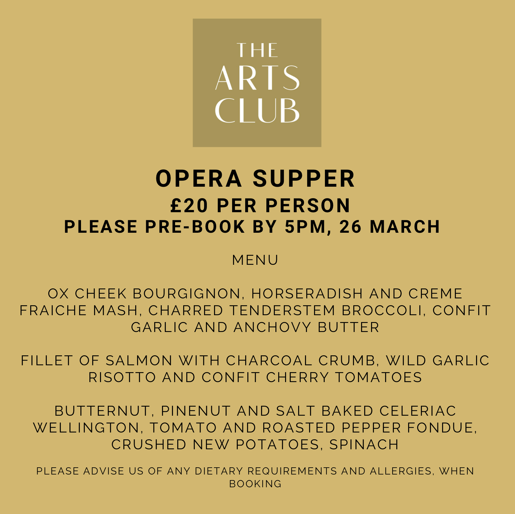 Pre-book your Opera Supper. We are delighted to announce that Opera suppers will make a very welcome return in April.